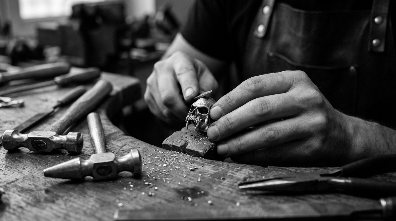 WolvarnSkull Flame Ring – Handmade Sterling Silver Unisex Band With Flame Design