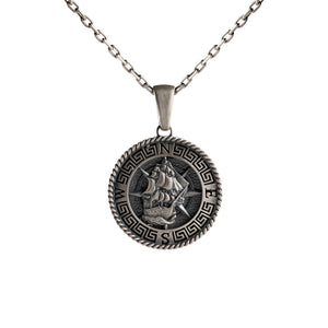925 Sterling Silver Pendant - Gothic Ship Symbol - Nautical Maritime Necklace