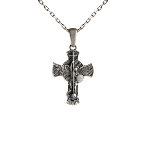 Archangel Michael Pendant Sterling Silver Cross Gothic Protective Amulet