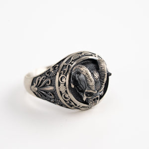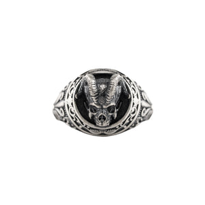 Demon Horns Skull Ring – 925 Sterling Silver Gothic Biker Horned Skull Band