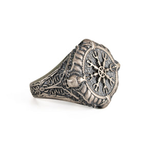 Helm of Awe Ring – Viking Silver Skull Design 925 Sterling Silver Norse Protection