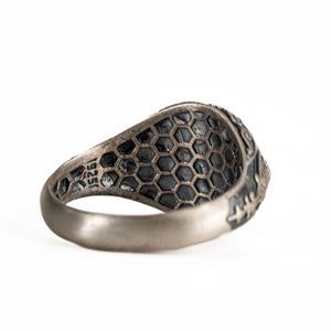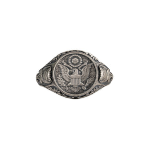 The Sterling Silver Coat of Arms Ring is a men's signet ring that symbolizes strength and unity. It features the American eagle crest, representing heritage and resilience.