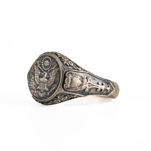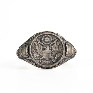 Sterling Silver Coat of Arms Ring - American Eagle Crest 925 Silver Signet