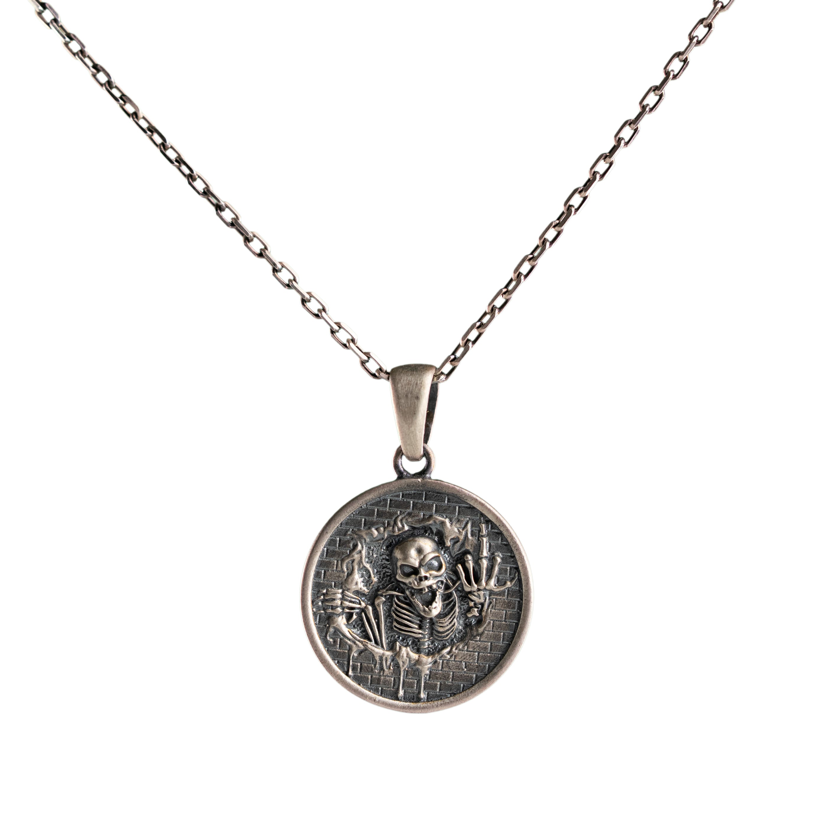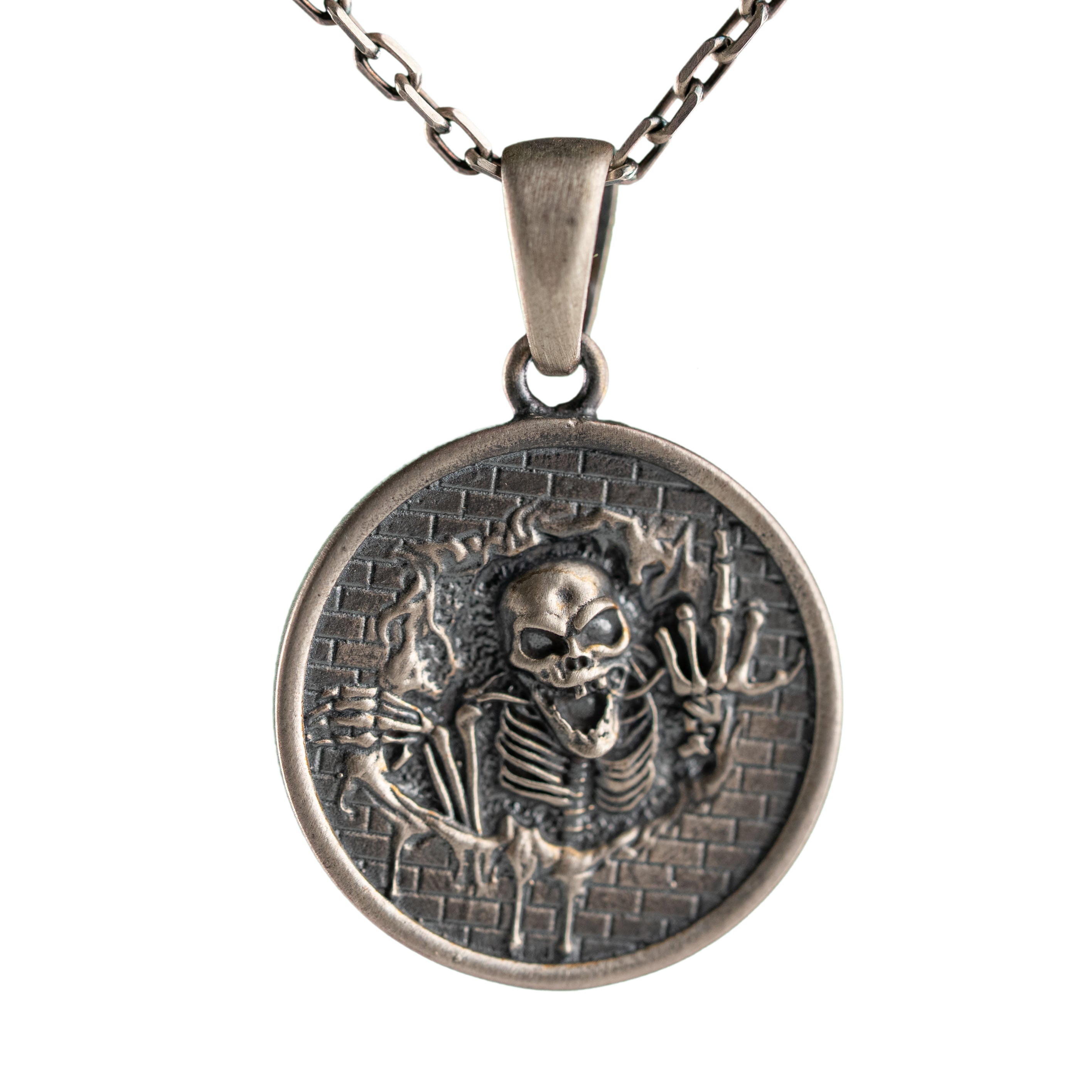 Sterling Silver Skull Jewelry Gothic Biker Ring And Skeleton Pendant Necklace