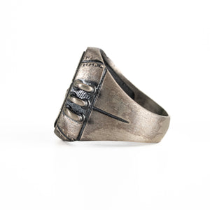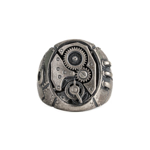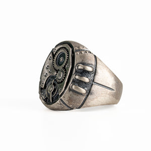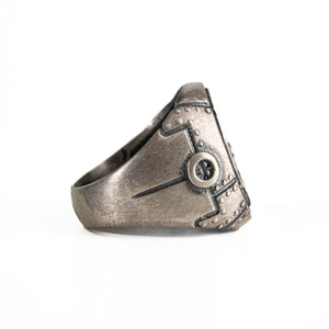 Sterling Silver Steampunk Ring - Industrial Gear Symbol - Gothic 925 Silver Biker Band